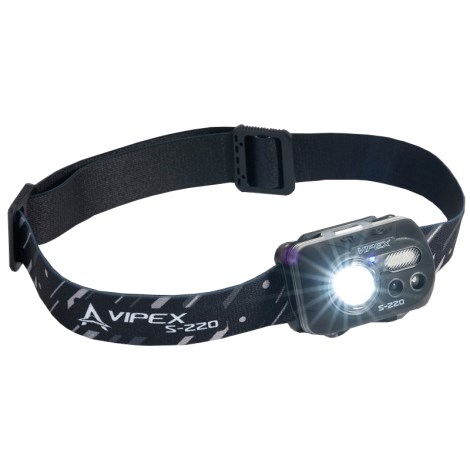 - Režim senzoru: Chcete-li tento mód zapnout, stiskněte levé tlačítko (modrá LED). Pravým tlačítkem svítilnu zapnete a přepínáte mezi jednotlivými režimy (Velmi jasný, jasný a červené světlo).