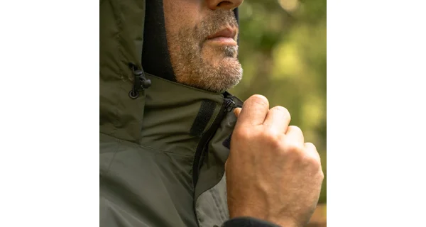 Lehký dvoudílný nepromokavý oblek zahrnuje bundu a kalhoty, které jsou vyrobené z voděodolné látky Army-Green s hodnotou 5000 mm.