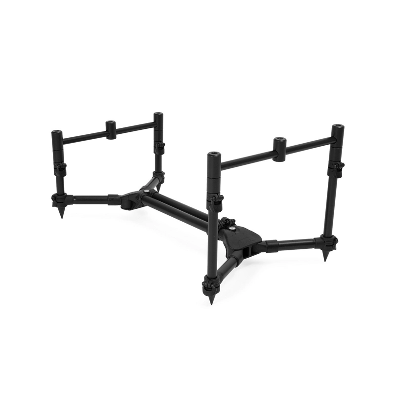 Kompaktní a lehký nízkoprofilový stojan na pruty s hrazdami pro 2 nebo 3 pruty.
