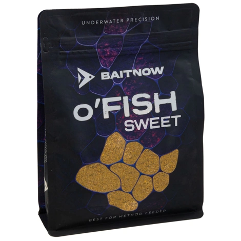 Pociťte výhodu s O'FISH SWEET. Účinnost této směsi vychází z jemně mleté frakce obohacené o kvalitní rybí moučku. Sladké aroma v kombinaci se střední pojivostí vytváří mimořádně lehkou a nadýchanou krmnou směs pro method feeder. Po navlhčení výrazně zvětšuje svůj objem, aktivně stimuluje ryby a zároveň nezpůsobuje nežádoucí překrmení. Tato vyvážená kompozice zajišťuje univerzální použití při Method Feederu i příbuzných feederových technikách. Využijte lehkost O'FISH SWEET i v nejnáročnějších podmínkách.