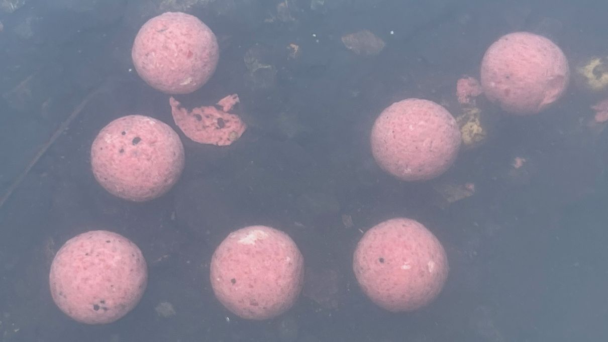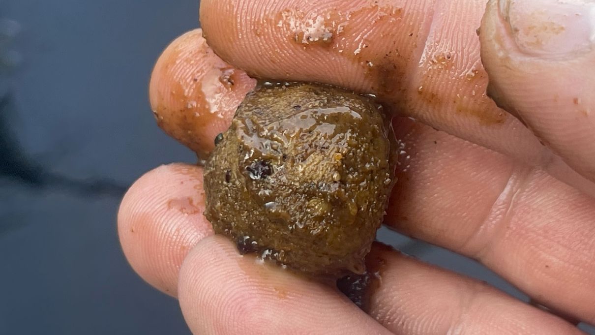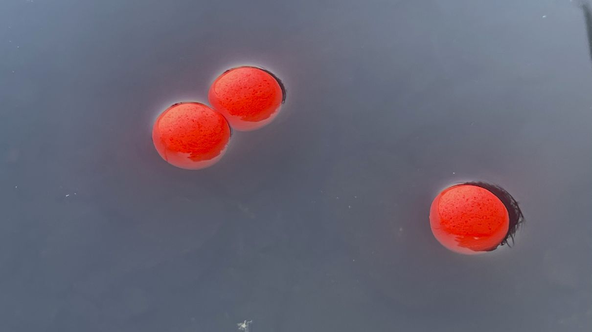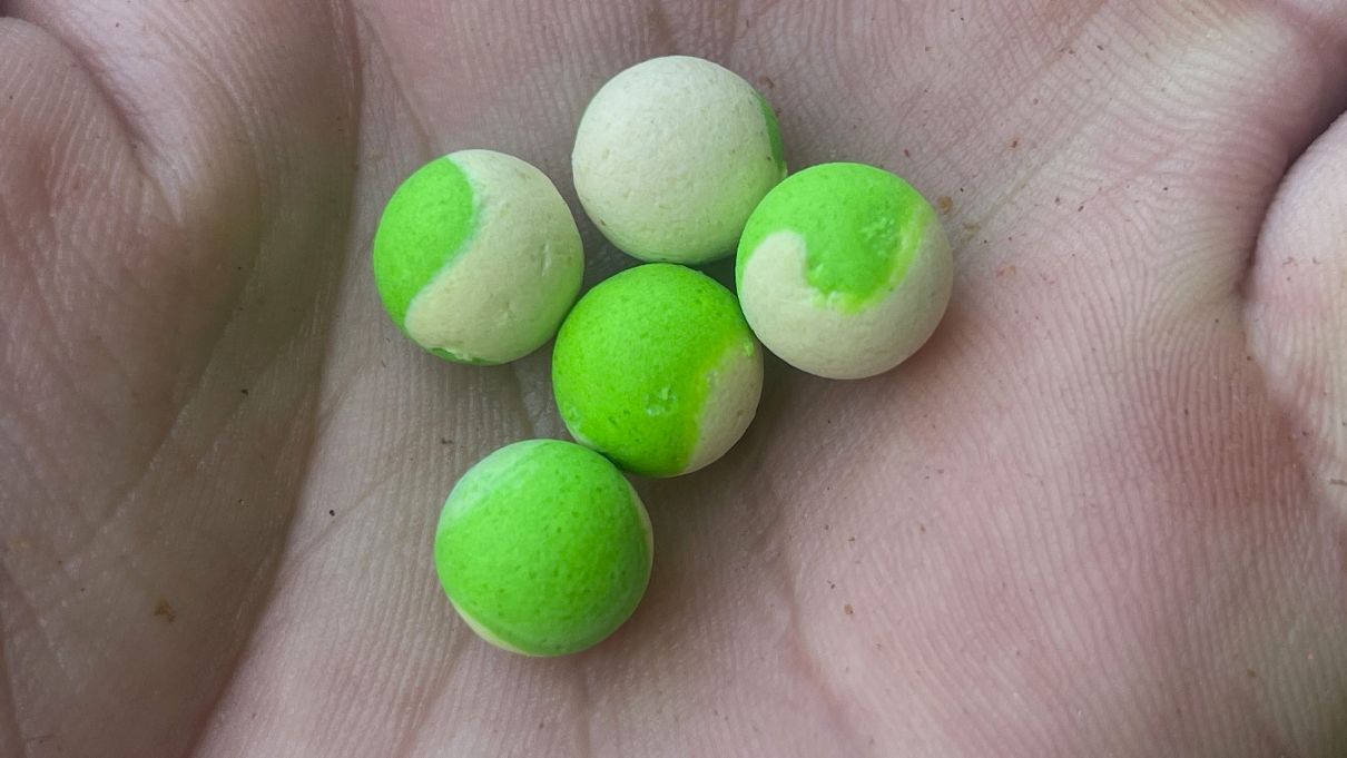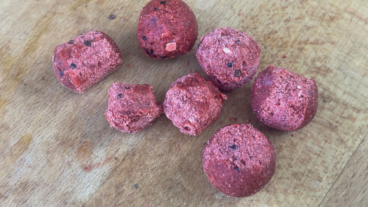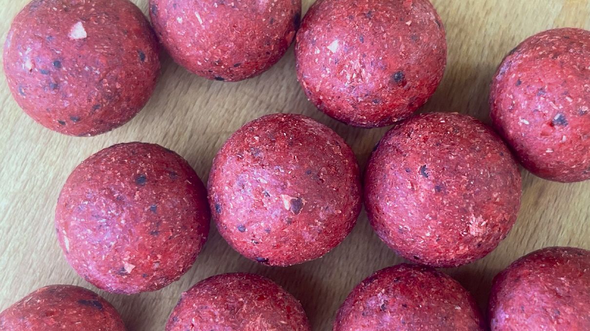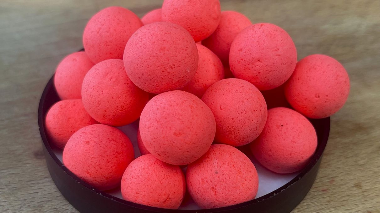 Silně dipované boilies vytažené z vody. Atraktivní povrch boilies je zřejmý na první pohled