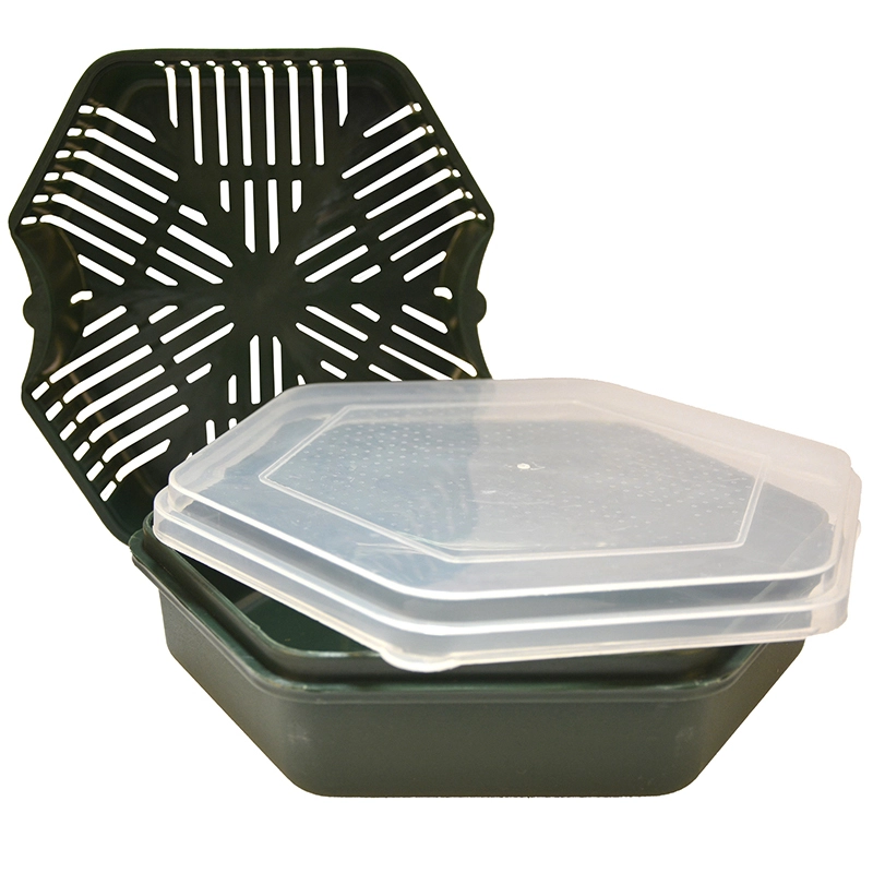 Šestihranná krabička na nástrahy s průhledným víkem a odkapávací miskou, která se perfektně vejde do boxu. Ideální pro skladování návnad, nástrah, namáčení pelet nebo dokonce drobné bižuterie. Možnosti jsou nekonečné! Boxy na nástrahy Carp Expert Practic jsou dostupné ve 3 velikostech.