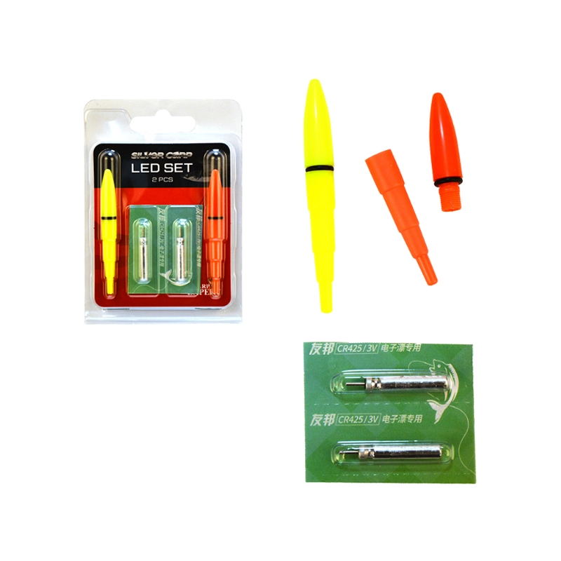 - Každý plovák je vybaven jasnou LED diodou (žlutá a oranžová) a dodáván s 2 bateriemi CR425 3V, takže je okamžitě připraven k použití.