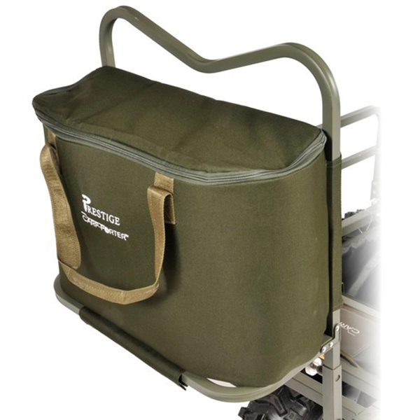 Kompaktní taška na vozík navržena specificky pro umístění na přední konstrukci vozíku s nosičem.
