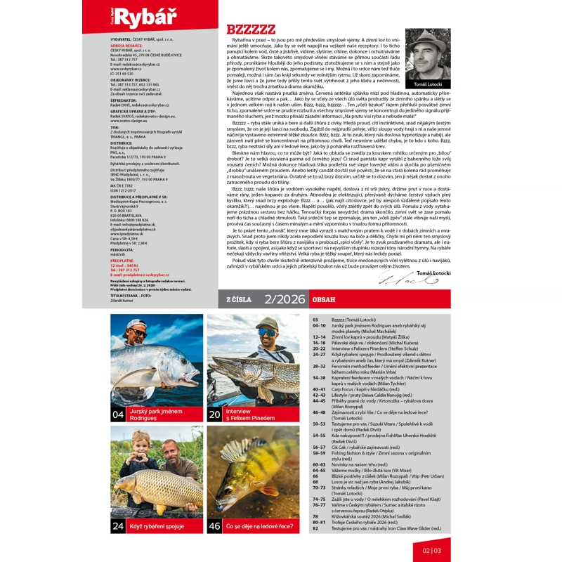Únor je měsíc očekávání – voda je stále ledová, ale myšlenky rybářů směřují k nové sezoně. Únorové vydání magazínu Český rybář přináší dávku inspirace: podíváme se do rybářského ráje, lovu kaprů a feederových technik. Najdete zde osvědčené rubriky, novinky, rybářskou módu a exkluzivní rozhovor s evropským rybářským influencerem. I když mrazy zatím brání velkým úlovkům, teď je čas snít, plánovat a připravovat se.