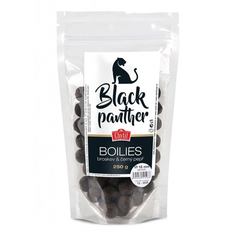 Boilies Panthera s broskvovou esencí a černým pepřem vyniká hrubší strukturou a 50% podílem rybích mouček.