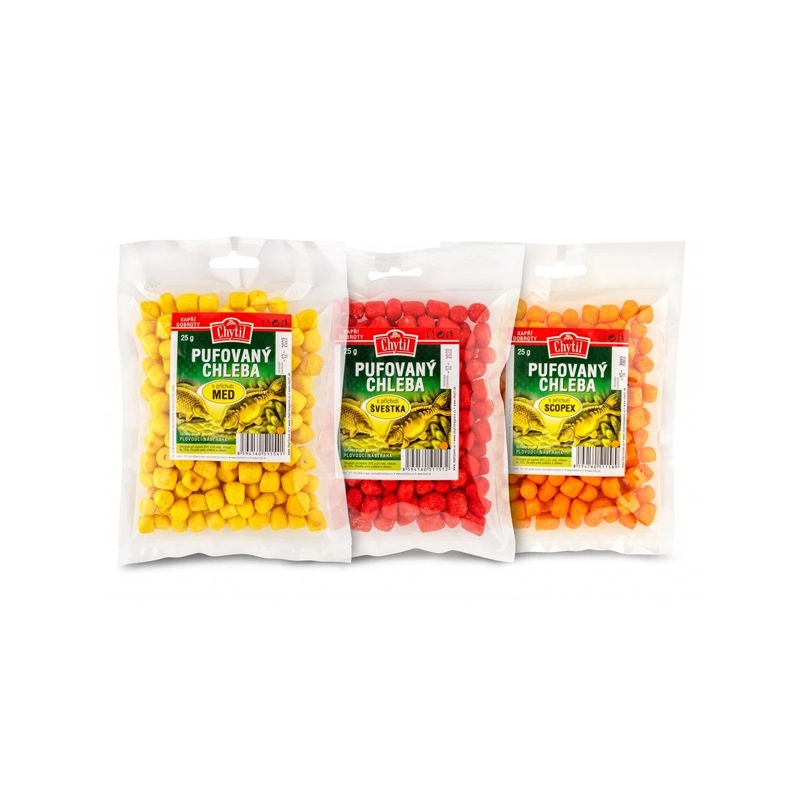 Drobné kousky chleba, které projdou procesem extrudace jsou navíc ještě barvené a aromatizované, což zvyšuje jejich atraktivitu a odolnost proti drobným rybkám.