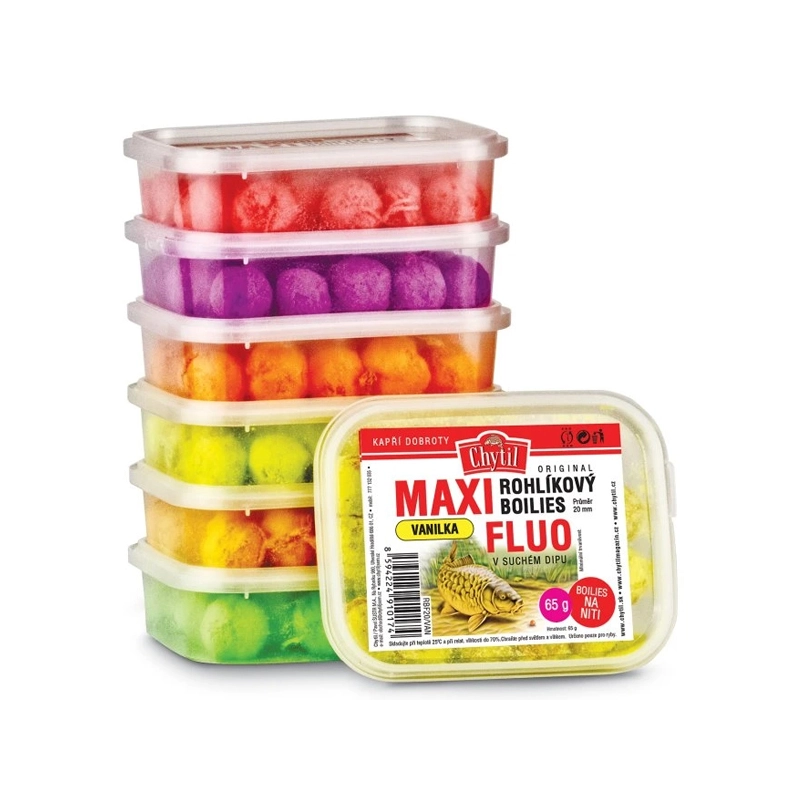 Tradiční rohlíkový boilies obalený v suchém fluo dipu a tekuté esenci.