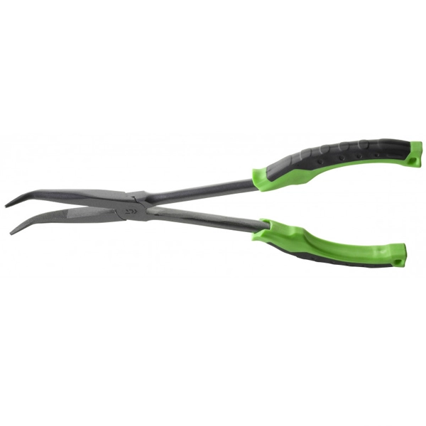 Extra dlouhé a odolné kleště vyrobené z nerezavějící oceli se zahnutými čelistmi.