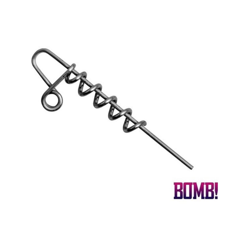 D-LOCK má pevný šroub, v přední části větší očko ve tvaru písmene D a menší očko na nacvaknutí návazce s trojháčkem.