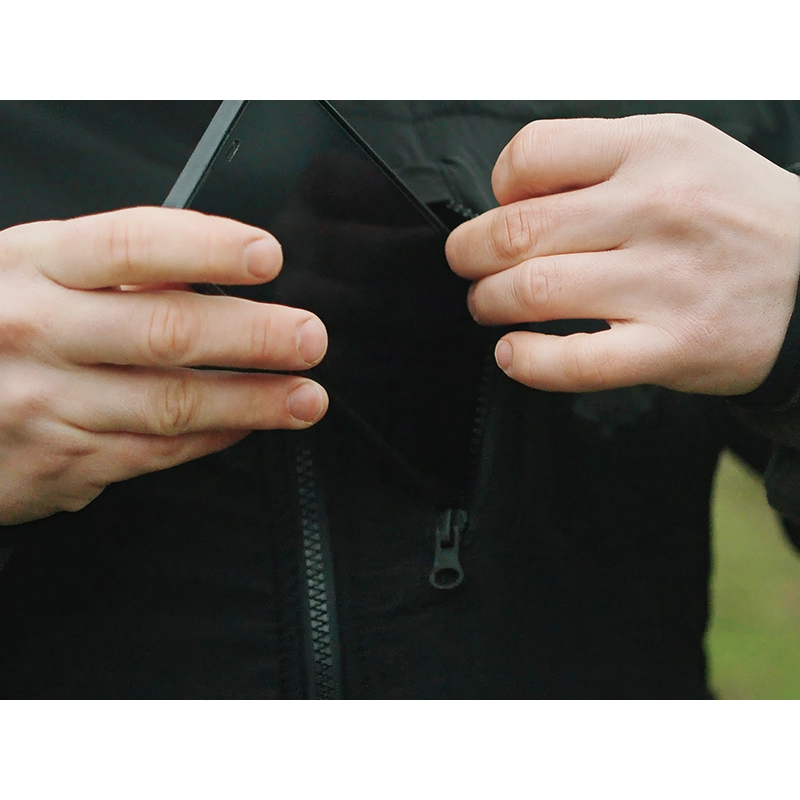 Vrchní část bundy je doplněna odolným materiálem, který zvyšuje ochranu proti větru a prodlužuje její životnost v nejvíce namáhaných oblastech. Vysoký límec udrží krk v teple i během chladných dnů u vody, zatímco dvojice bočních kapes na knoflíky poskytne dostatek prostoru pro zahřátí rukou nebo uložení drobností. Na hrudi se nachází praktická kapsa na zip, ideální pro uložení dokladů nebo menších předmětů, které potřebujete mít stále po ruce.