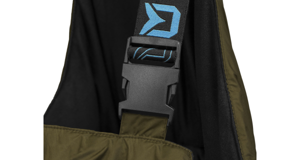 - Vyvýšený pas udržuje záda v teple a nastavitelné kšandy s logem Delphin zajišťují pohodlí i styl.