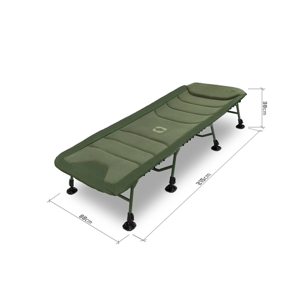 • Osm teleskopických nohou zajišťuje stabilitu na každém povrchu a umožňuje snadné vstávání i vytvoření úložného prostoru pod lehátkem.