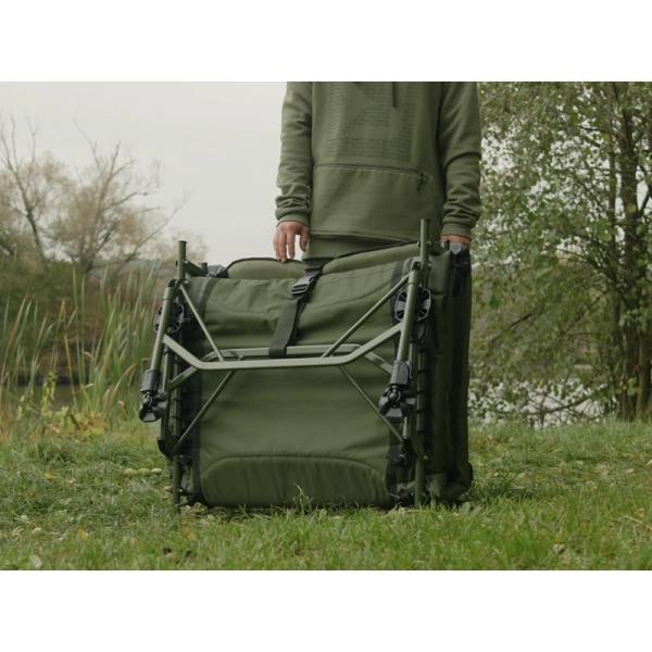 Lehátko ERGO CARP kombinuje pohodlí, stabilitu a odolnost s pevnou konstrukcí a hřejivou matrací, ideální pro komfortní odpočinek při rybaření.