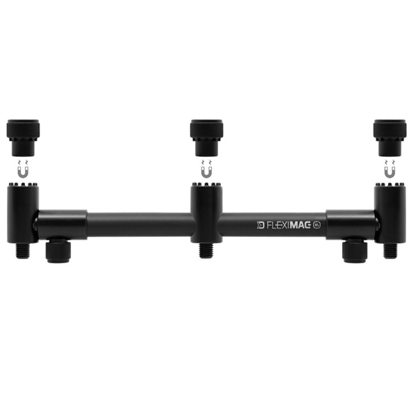Hrazda na pruty FlexiMAG BUZZ z pevného hliníku s černou práškovou úpravou má magnetické rychlospojky a univerzální závit kompatibilní s většinou vidliček a bouřkových tyčí.