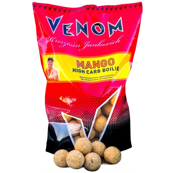Boilie Venom High Carb s příchutí Mango a o průměru 24 mm se vyznačuje vysokým obsahem sacharidů.