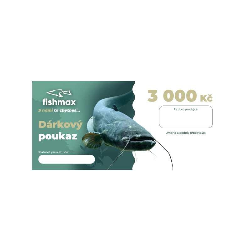 Dárkový poukaz v hodnotě 3000 Kč je dokonalým dárkem pro každého rybáře nebo rybářku. Jeho platnost je 12 měsíců od data objednávky.