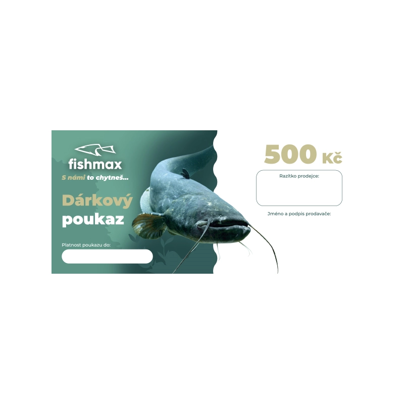 Dárkový poukaz v hodnotě 500 Kč je dokonalým dárkem pro každého rybáře nebo rybářku. Jeho platnost je 12 měsíců od data objednávky.
