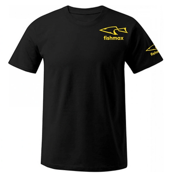 Pohodlné tričko černé barvy ve velikosti 2XL se žlutým originálním potiskem FishMax!