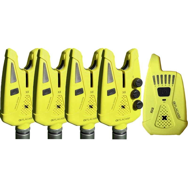 Limitovaná edice FLACARP X8 + RX8 spojuje signalizátory X8 s bezdrátovým příposlechem RX8 v osmi barvách: modrá, žlutá, oranžová, khaki, šedá, granit, bílá a fialová.