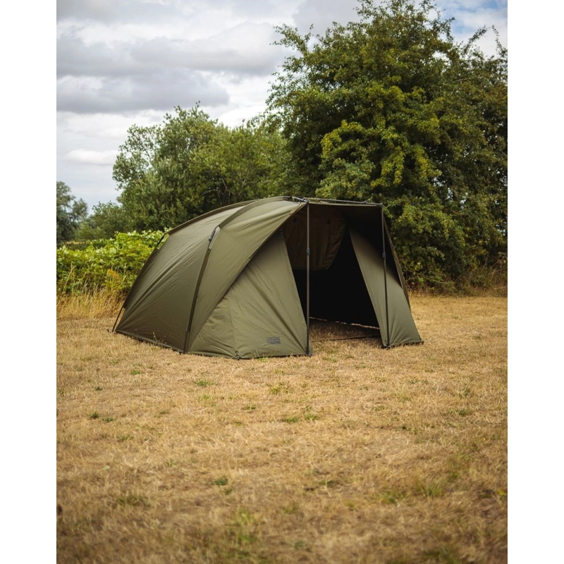 Perfektní bivak vějířovitého stylu navržený pro dvě lehátka, poskytuje bezkonkurenční poměr ceny a výkonu začátečníkům nebo rybářům s omezeným rozpočtem.
