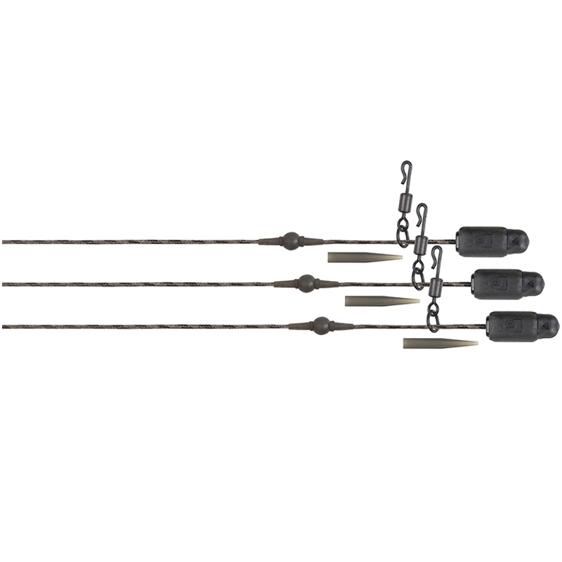 Návazce Leadcore, Copper Core a Submerge kompletní s korálky Leader Beads, obratlíky Heli Swivels a patentovaným klipem Fox Heli-Clip