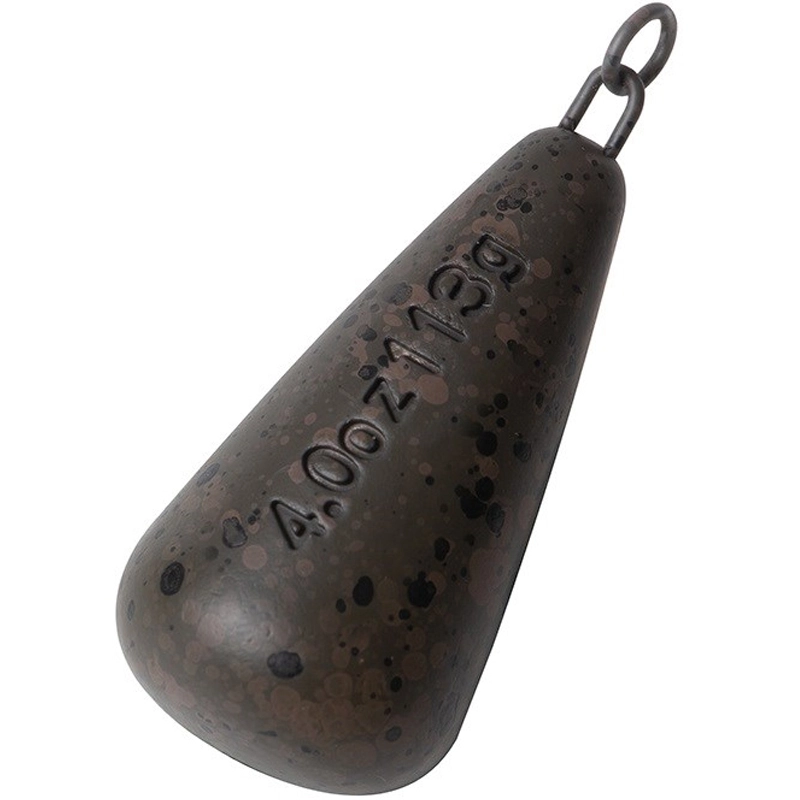 Zátěž s hmotností výrazně umístěnou v přední části s tupou špičkou, při dopadu na dno předávala co největší cit. Obratlík nahrazený 4mm očkem pro lepší prezentaci helikoptérové montáže. Lze použít i v zavěsce na olovo. Maskovací nelesknoucí povrchová úprava.