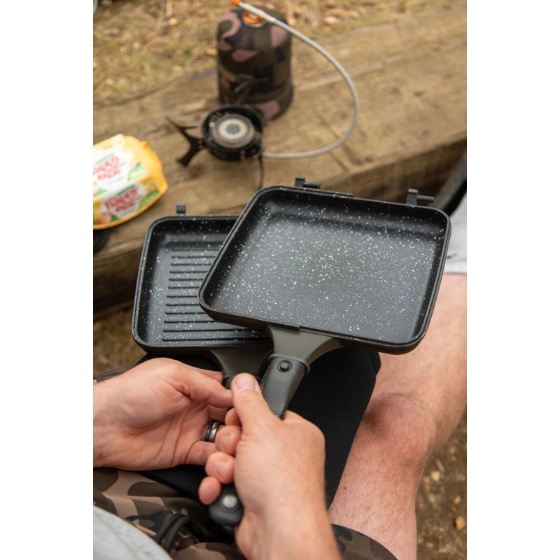 Víceúčelová pánev Cookware Multi-Pan v khaki barvě je vyrobena tlakovým odléváním hliníku. Součástí je mřížka z nerezové oceli omezující kontaktu připravovaných sladkostí a pizzy s povrchem pánve, omezuje tak jejich připálení. Panty jsou rozebíratelné pánve je možné použít samostatně. Stiskem tlačítka odnímatelné rukojeti pro kompaktní velikost při skladován. Pouze pro použití na plynových vařičích. Dodávána v ochranném neoprenovém obalu.