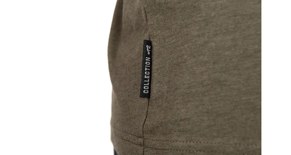 Tričko v zelené barvě s decentním černým designem loga Foxu na hrudi a na zádech u krku.