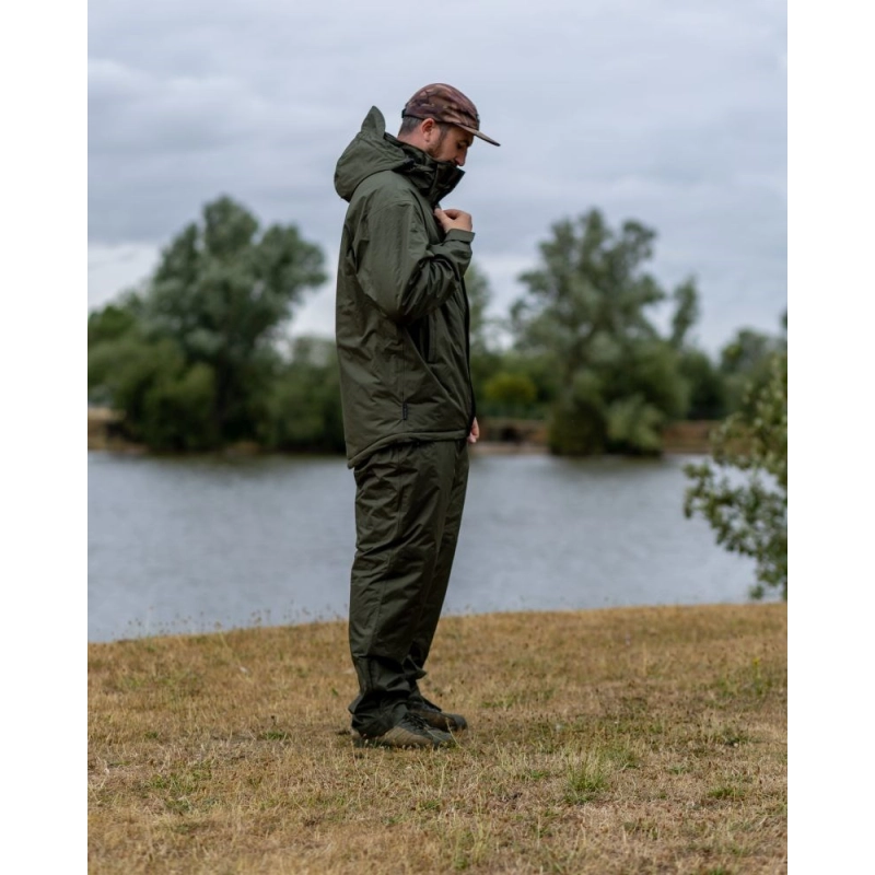 Kompletní hřejivý set obsahuje bundu i kalhoty s kompletním zateplením těla a ochranu před vlhkostí při chladném a deštivém počasí.