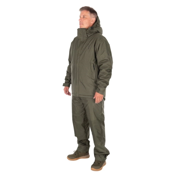 Kompletní hřejivý set obsahuje bundu i kalhoty s kompletním zateplením těla a ochranu před vlhkostí při chladném a deštivém počasí.