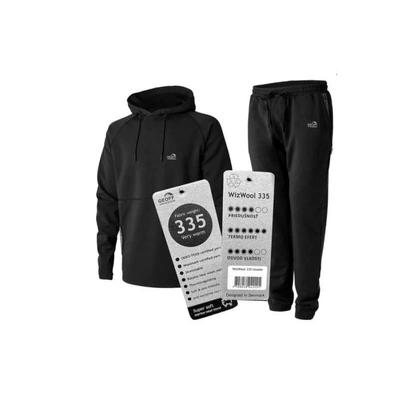 Mikina s kapucí a tepláky WizWool 335 s moderním designem jsou velice pohodlné a vhodné pro všechny outdoorové aktivity bez omezování v pohybu. CELKEM ve výhodném setu.