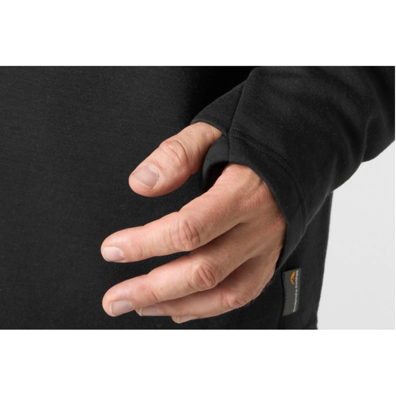 Mikina WizWool 335 je dokonalý vlněný fleec. Dokonalá rovnováha mezi měkkostí, teplem a výkonem. Je vyrobena z příze s certifikátem Woolmark, přičemž přední panely jsou vyrobeny z ultrajemné směsi merino vlny o tloušťce 15,5 – 18,5 mikronů. Toto jemnější vlákno nejen vytváří luxusně měkký povrch, ale také zvyšuje hmotnost látky, díky čemuž mají přední panely výrazný pocit gramáže 545 g/m2.