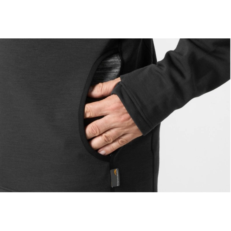 Mikina WizWool 335 je dokonalý vlněný fleec. Dokonalá rovnováha mezi měkkostí, teplem a výkonem. Je vyrobena z příze s certifikátem Woolmark, přičemž přední panely jsou vyrobeny z ultrajemné směsi merino vlny o tloušťce 15,5 – 18,5 mikronů. Toto jemnější vlákno nejen vytváří luxusně měkký povrch, ale také zvyšuje hmotnost látky, díky čemuž mají přední panely výrazný pocit gramáže 545 g/m2.
