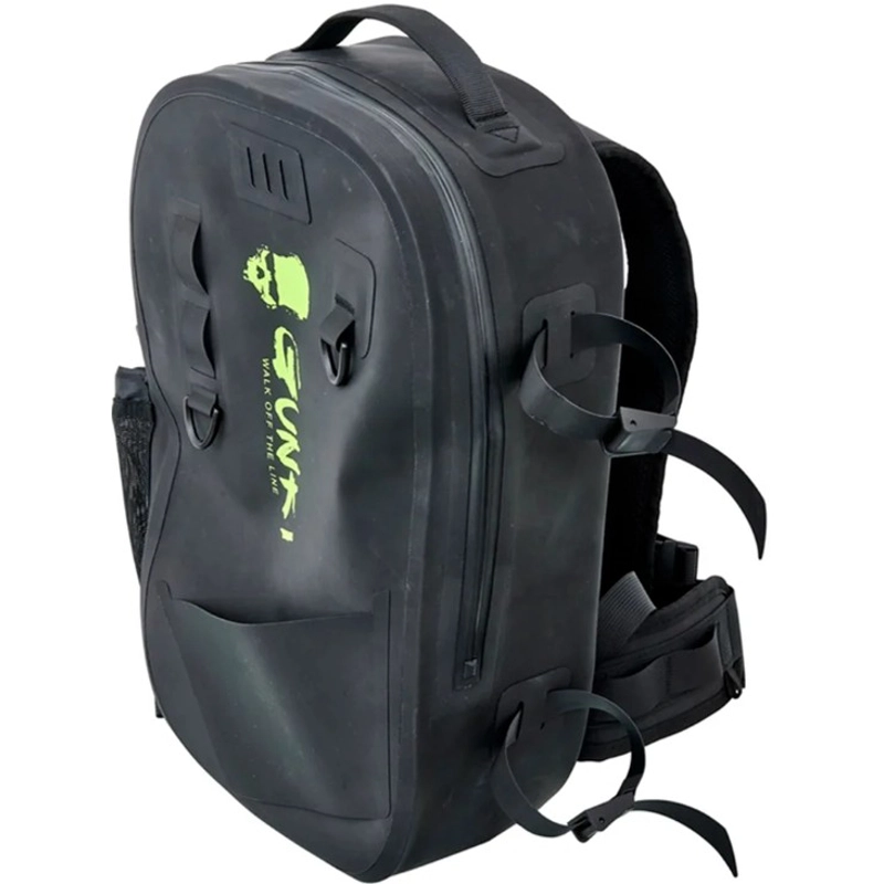Nezbytnost pro chytání ve vodě! Nepromokavý batoh GUNKI PROTEAM BACKPACK je navržen s ohledem na potřeby rybářů, kteří se při lovu pohybují ve vodě, aby se dostali na hůře přístupná místa nebo získali delší náhozy. Jeho spodní část je tvořena jednolitým blokem, který chrání obsah batohu při kontaktu s vodní hladinou. Použité materiály, zatavené švy a vodotěsný zip (který nekončí u dna) zajišťují vysokou úroveň ochrany proti vniknutí vody.