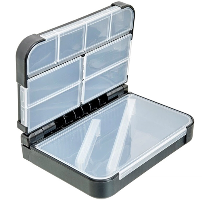 Kompaktní krabička s celkově 8+1 samostatně uzavíratelnými přihrádkami na drobnosti a menší nástrahy.