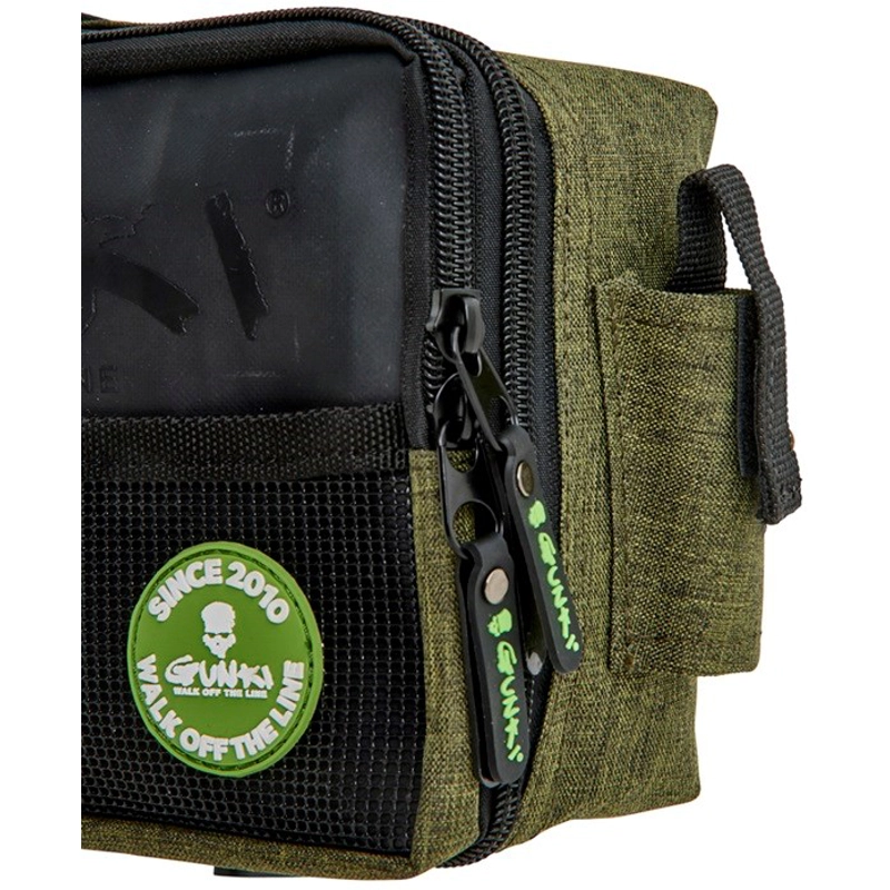 Praktická ledvinka pro lov na přívlač. Obsahuje hlavní komoru na zip, která je navíc zajištěna suchým zipem. Dále obsahuje menší síťovanou kapsu, držák kleští a D kroužek na další příslušenství. Nastavitelný popruh pro snadné použití. Ledvinka obsahuje dvě krabičky na nástrahy 23 x 11,5 x 3,2 cm. Pevná odolná tkanina je doplněná o kvalitní zipy. To vše v Gunki designu.