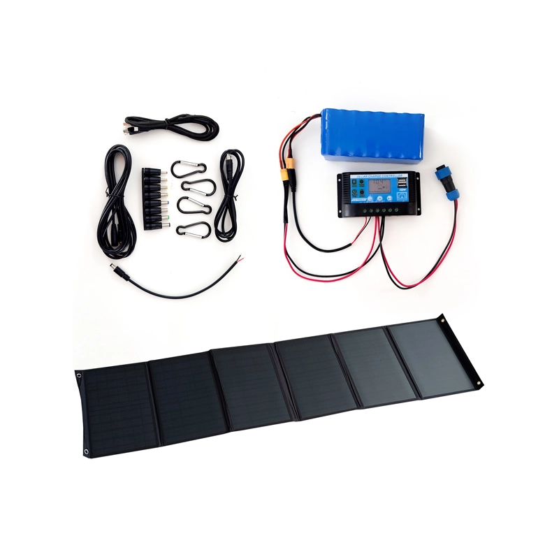 - Součást balení: panel, regulátor napětí, konektory, karabinky