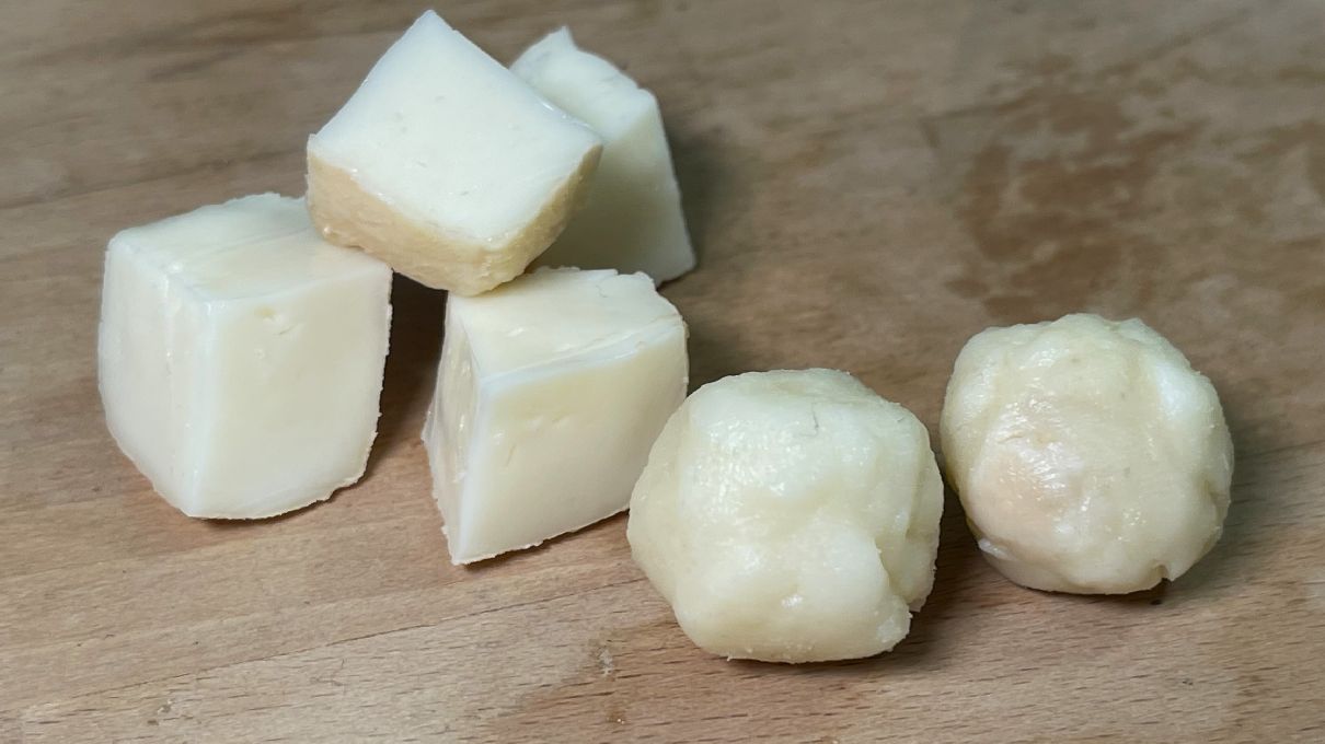 Ze sýru můžeme udělat kuličky nebo nakrájet kostičky - a poté romadur nastražíme na háček