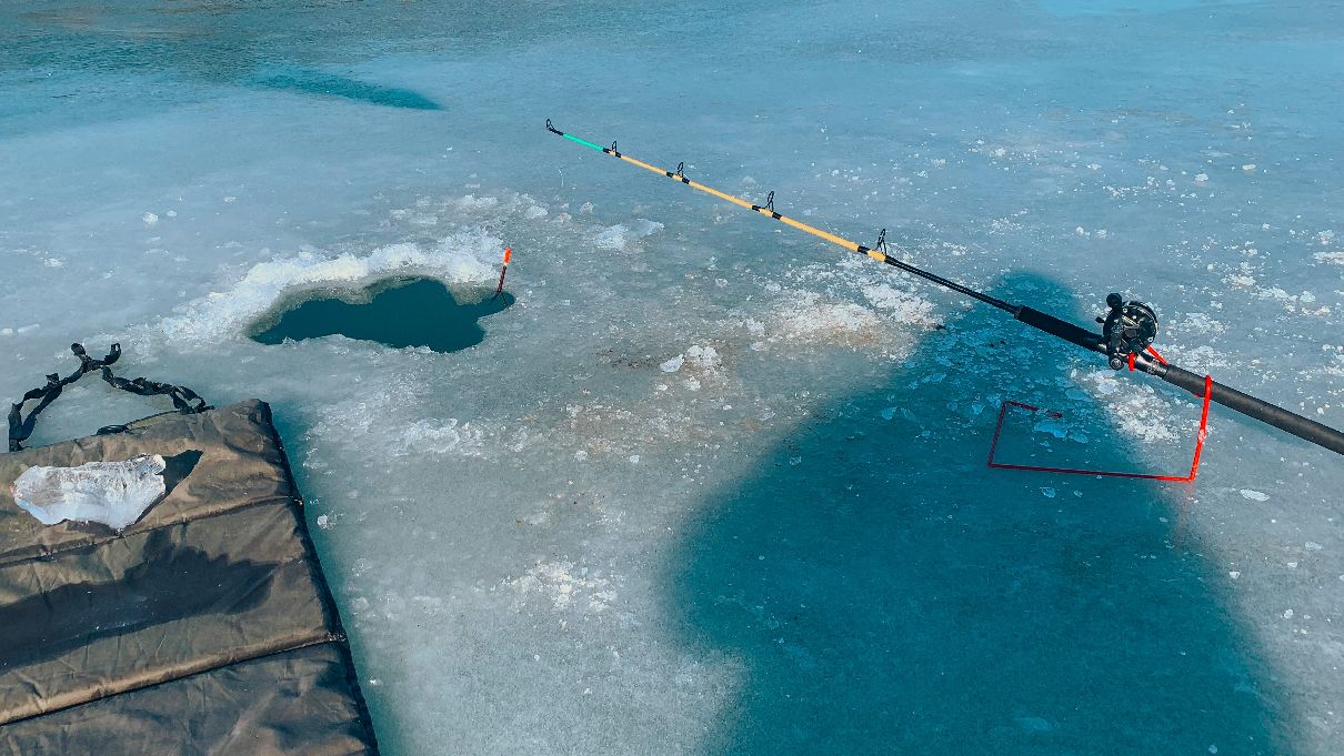 Při lovu jesetera pod ledem používáme pevnější pruty na dírky