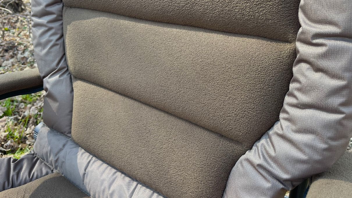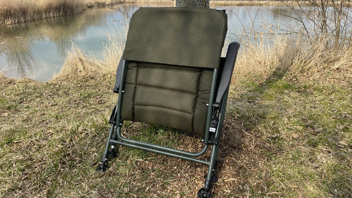 Zcela zásadní je potom rozměr zádové opěrky. Zejména ve chvíli, kdy se rybář vydá k vodě po náročné práci, tak je zapotřebí rozměrná opěrka, o kterou se může pohodlně opřít. Osobně měřím 190 centimetrů a sám mám rád, když je opěrka co nejvyšší. K většímu pohodlí pak přispívá také polstrování v hlavové části, které je krásně měkké.