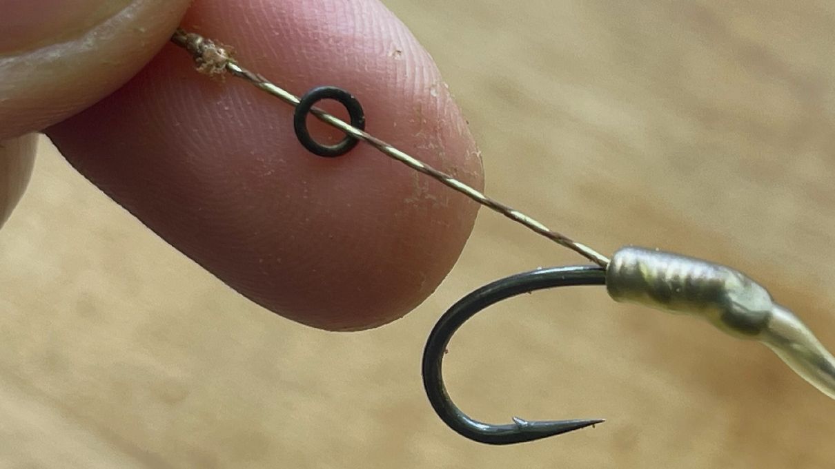 Někteří rybáři při lovu na tento jednoduchý návazec s pop-up boilies používají i drobný kroužek...