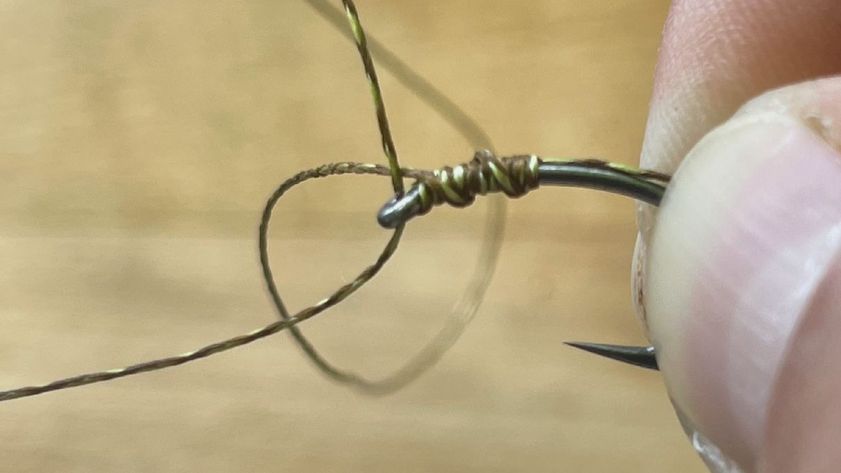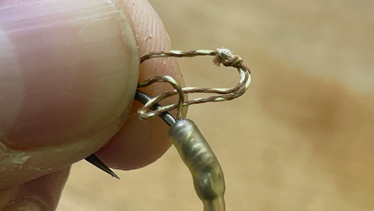 Po navléknutí převleku vytvoříme na konci návazce smyčku pro připevnění quick change obratlíku