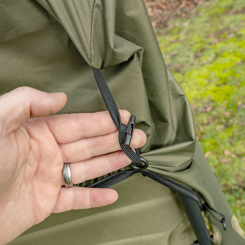 Vodotěsný potah vyhovuje většině rybářských křesel.