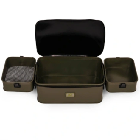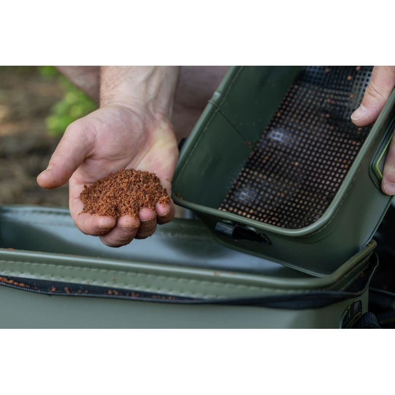Tato prostorná a odolná EVA taška je ideálním organizérem pro feederový i kaprový rybolov, neboť díky chytrému systému dvou vnitřních přihrádek a možnosti jejich připnutí na vnější stranu vytváří praktickou pracovní plochu přímo u vody. Vedle velkorysého prostoru pro krabičky s nástrahami nabízí i speciální síťovanou vložku pro prosívání krmiva a pohodlný ramenní popruh, což z ní dělá spolehlivého pomocníka pro přehledné uspořádání a ochranu vaší výbavy.