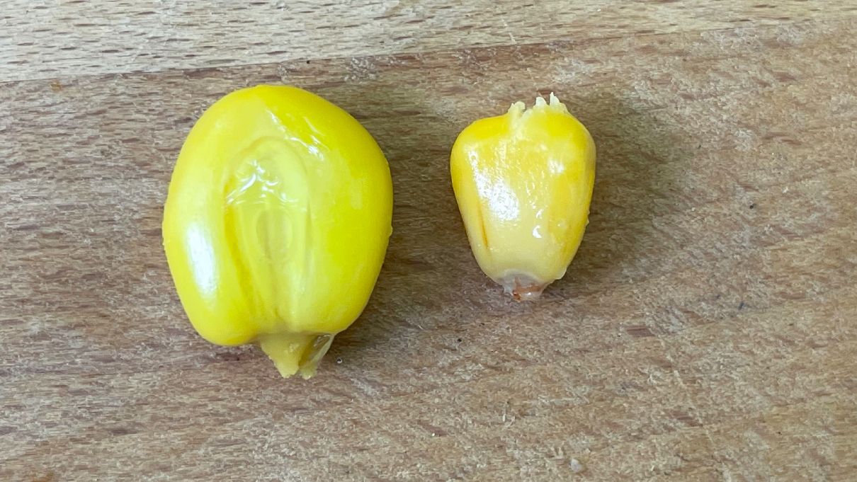 Velikostní rozdíl mezi mega kukuřicí a klasickou vařenou kukuřicí je patrný na první pohled
