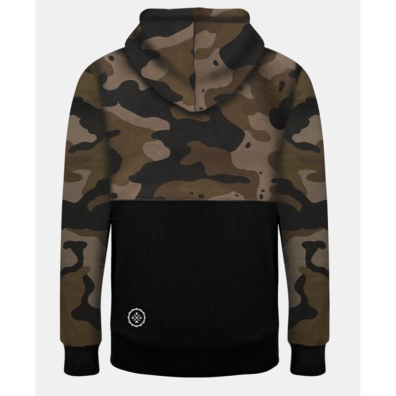 Kumu stylová mikina DECEPTION s jedinečným maskovacím vzorem v tlumených khaki/hnědých tónech. Vyrobeno z 320g/m2 česané tkaniny, která je dokonale měkká na dotek a neskutečně pohodlná. 4barevný celo camo potisk s kontrastní černou spodní částí těla. Tkaná nášivka na paži a potisk s ikonou loga KUMU na spodní části zad.