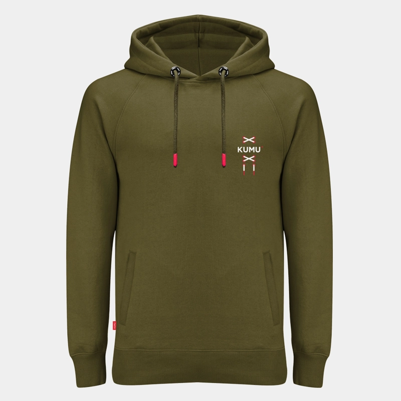 Mikina Earn Your Stripes je grafická pocta okounům („Stripeys“) a rybářské trpělivosti – motiv kombinuje pruhy ryby s narážkou na úspěch, který si musí rybář zasloužit. Vyrobena z mimořádně měkké khaki tkaniny o gramáži 150 g/m², s detailním šestibarevným sítotiskem a tkanými bočními štítky.