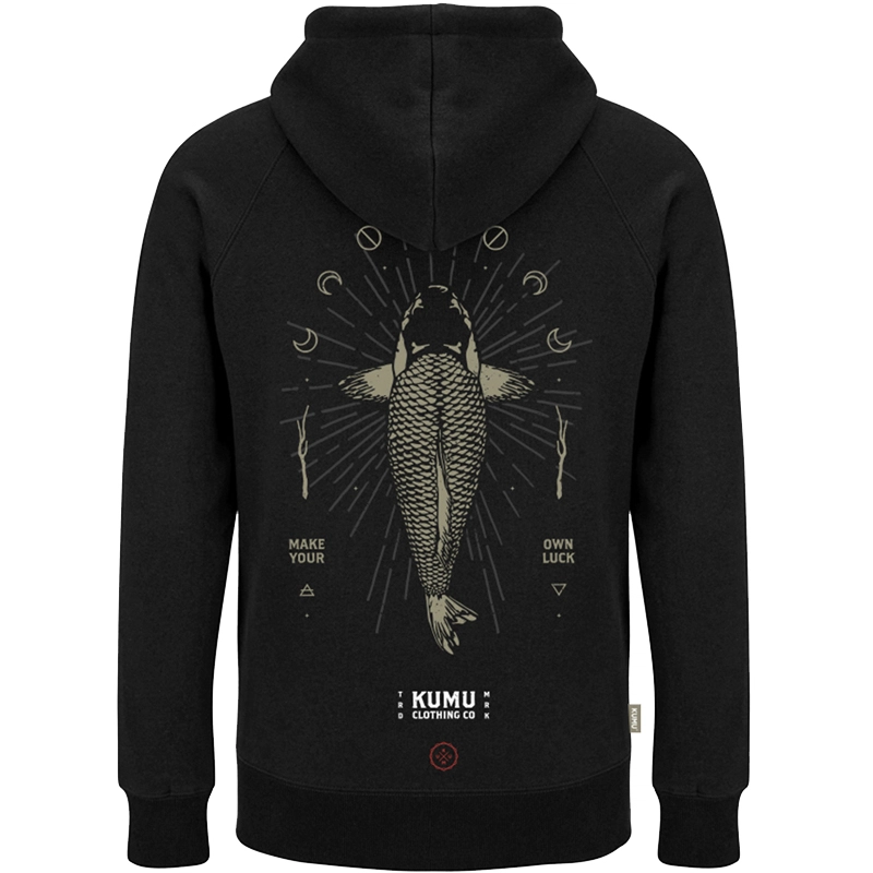 Make Your Own Luck znamená „Buďte strůjcem svého štěstí.“ Tento slogan připomíná, jakou roli hraje štěstí při rybaření. S tolika vnějšími vlivy, které jsou mimo naši kontrolu – od fází měsíce až po tlak vzduchu – pevně věříme filozofii, že pouze my sami jsme strůjci svého vlastního štěstí. Platí to nejen v rybaření, ale i v životě obecně. Ručně kreslená grafika vytištěná na super měkké 100% bavlněné tkanině 165gsm se starobylými detaily v mosazném provedení.