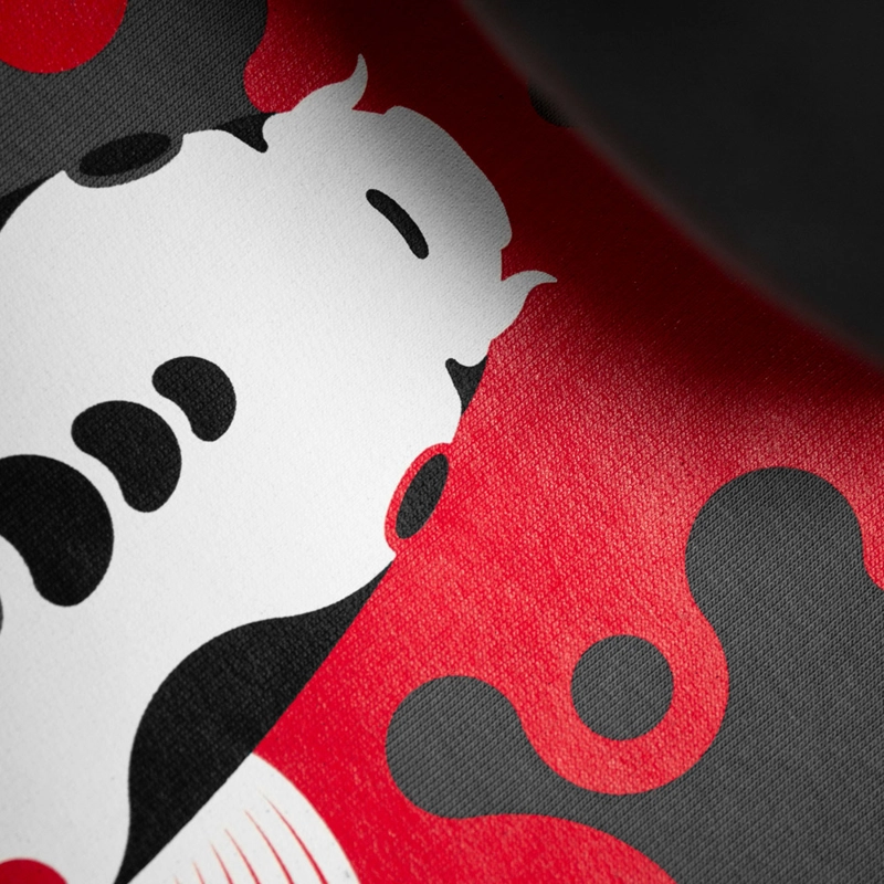 Jedna z nejoblíbenějších linií, nově dostupná v krásné břidlicově šedé barvě. Grafika vycházejícího slunce čerpá inspiraci z kultury a víry Dálného východu. Studium použití červené barvy v japonském umění a její význam, v kombinaci s obdivem ke kaprům Koi a jejich symbolice, vedlo k vytvoření této ikonické grafiky. Tříbarevný sítotisk na superměkké organické látce 150 g s tkaným bočním štítkem.